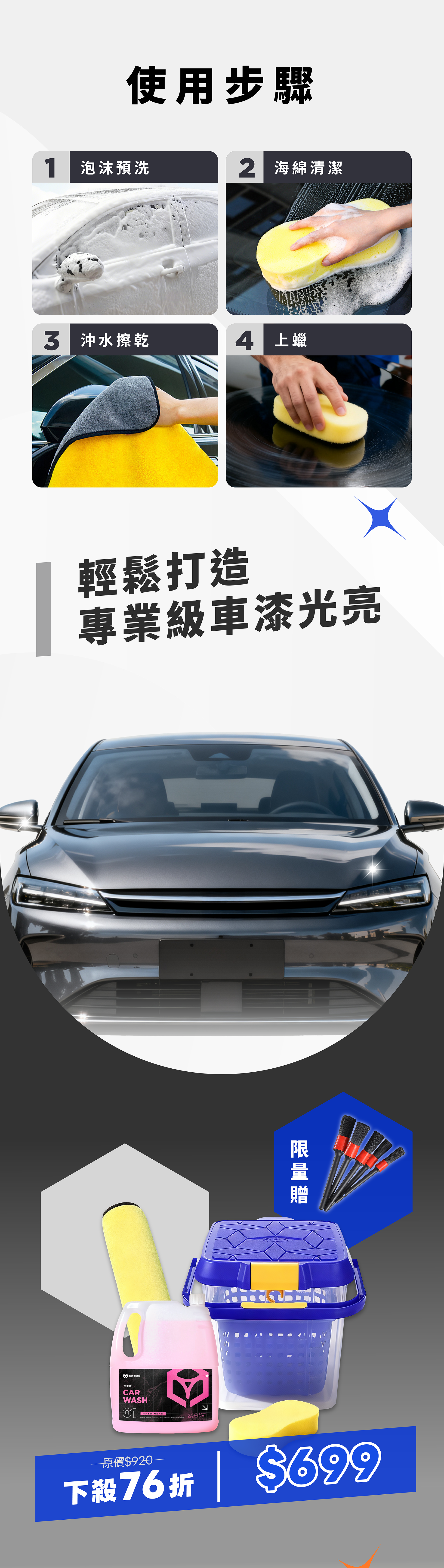 Carcube 快速上光保養組採用高分子亮光科技,噴灑後立即形成保護膜,瞬間增亮並提升防水性。免打蠟、免拋光設計,大幅節省時間,是忙碌車主維持愛車亮度與防護的最佳選擇。
