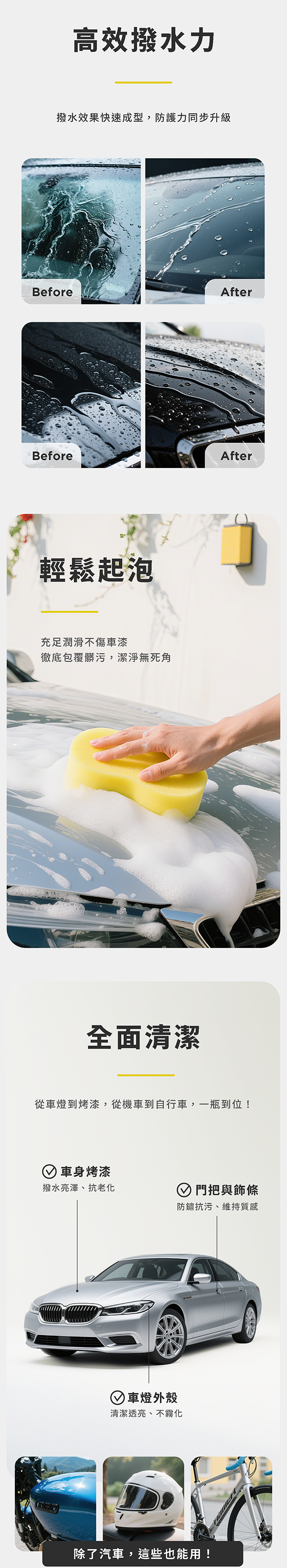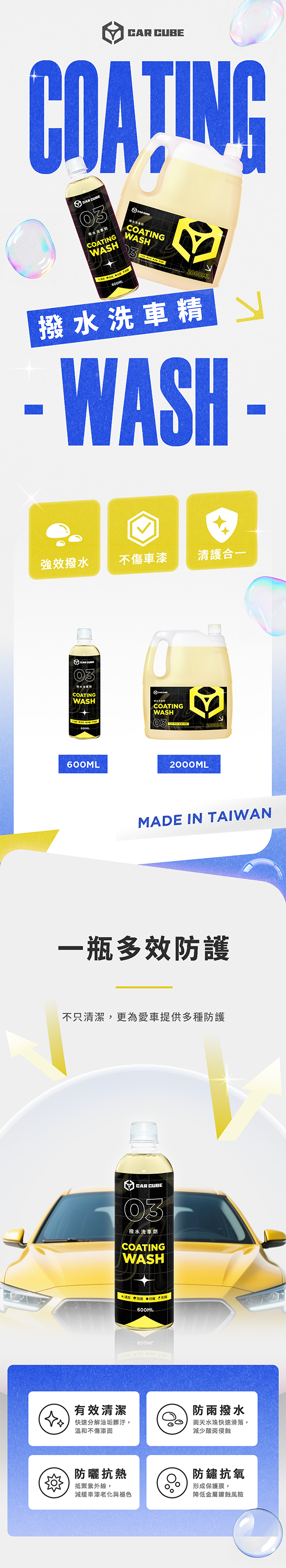 Carcube 撥水洗車劑 600ML 採用高效潤滑與撥水雙重配方,清潔同時形成防水保護層。泡沫細緻、洗後光亮如新,是家庭車主輕鬆完成汽車洗車與汽車美容的實用產品。讓車漆長效防污、光澤持久。
