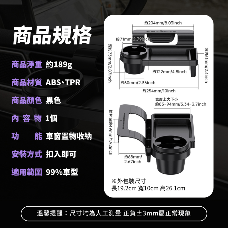 Carcube 車窗置物盒採免膠卡扣設計,安裝簡單不傷車體,提供飲料、手機、票卡等臨時收納空間。可隨車窗高度調整,是車內整潔與便利性的理想汽車用品。
