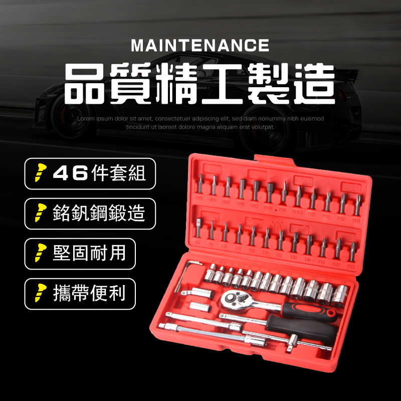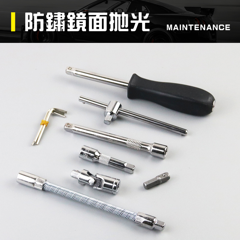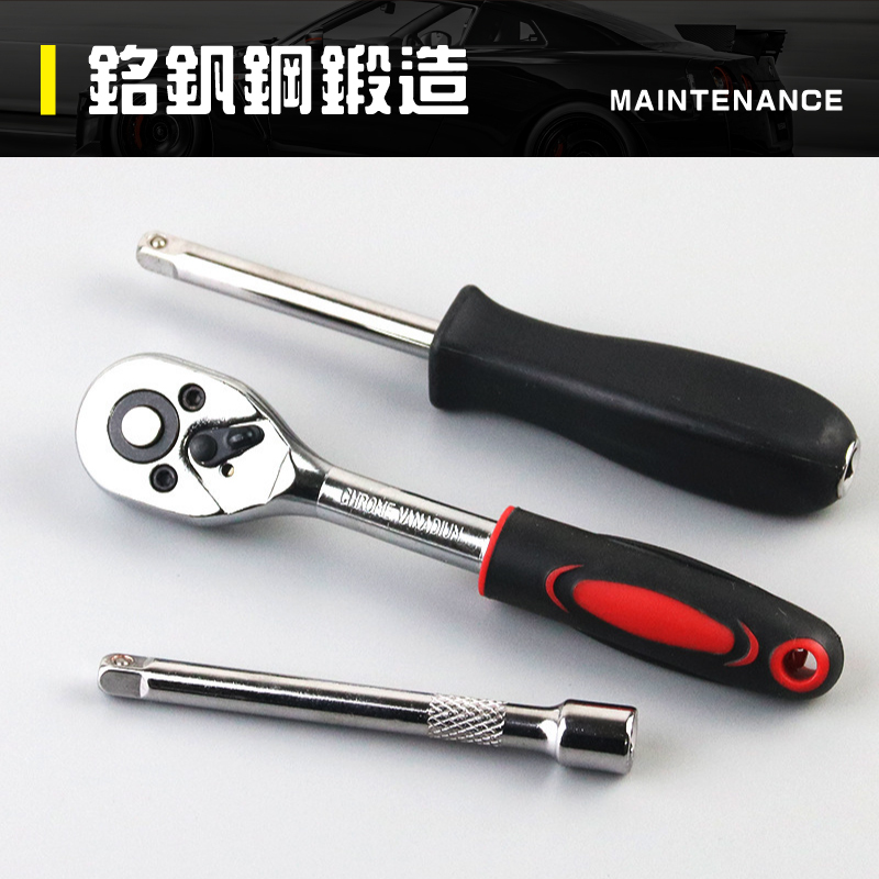 包含多尺寸套筒與延長桿,適用於汽車維修與家用保養,一組搞定各種拆裝需求。